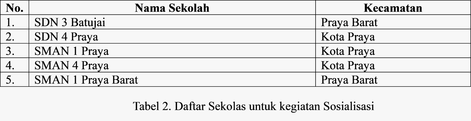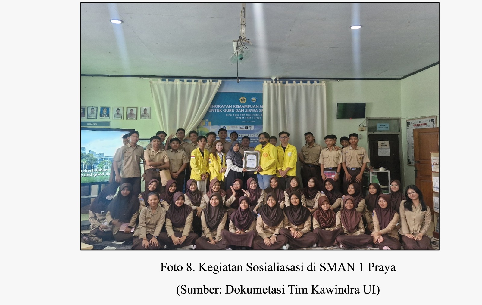 Sebagai bagian dari upaya melestarikan cerita rakyat, tim Kawindra juga mengadakan kegiatan sosialisasi di lima sekolah di Lombok Tengah. Kegiatan ini bertujuan untuk memperkenalkan kembali cerita rakyat kepada para siswa dan menumbuhkan rasa cinta terhadap budaya lokal. Dalam sosialisasi ini, siswa diajak untuk mendengarkan dan menceritakan ulang kisah-kisah yang mereka dengar, yang kami dapatkan saat turun ke 10 desa, dan juga kami membuatkan semacam buku dalam bentuk pdf, yang berisi beberapa cerita Prosa Rakyat yang sudah do kumpulkan, selain itu sosialisasi ini juga sambil mengajarkan nilai-nilai moral yang terkandung di dalam cerita prosa rakyat tersebut. Para siswa sangat antusias mengikuti kegiatan ini, yang tidak hanya memperkenalkan cerita rakyat tetapi juga memperkuat rasa kebanggaan akan warisan budaya mereka.